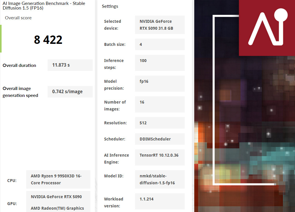 ↑ UL Procyon AI Image Generation Benchmark Stable Diffusion (FP16)。