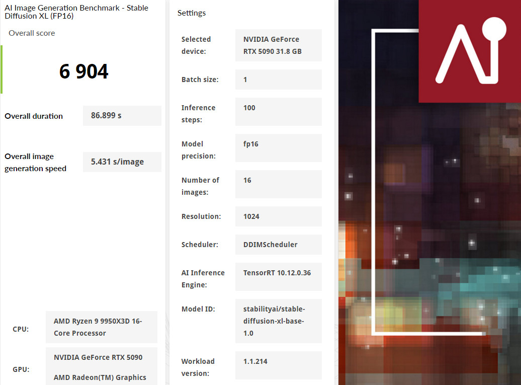 ↑ UL Procyon AI Image Generation Benchmark Stable Diffusion XL (FP16)。