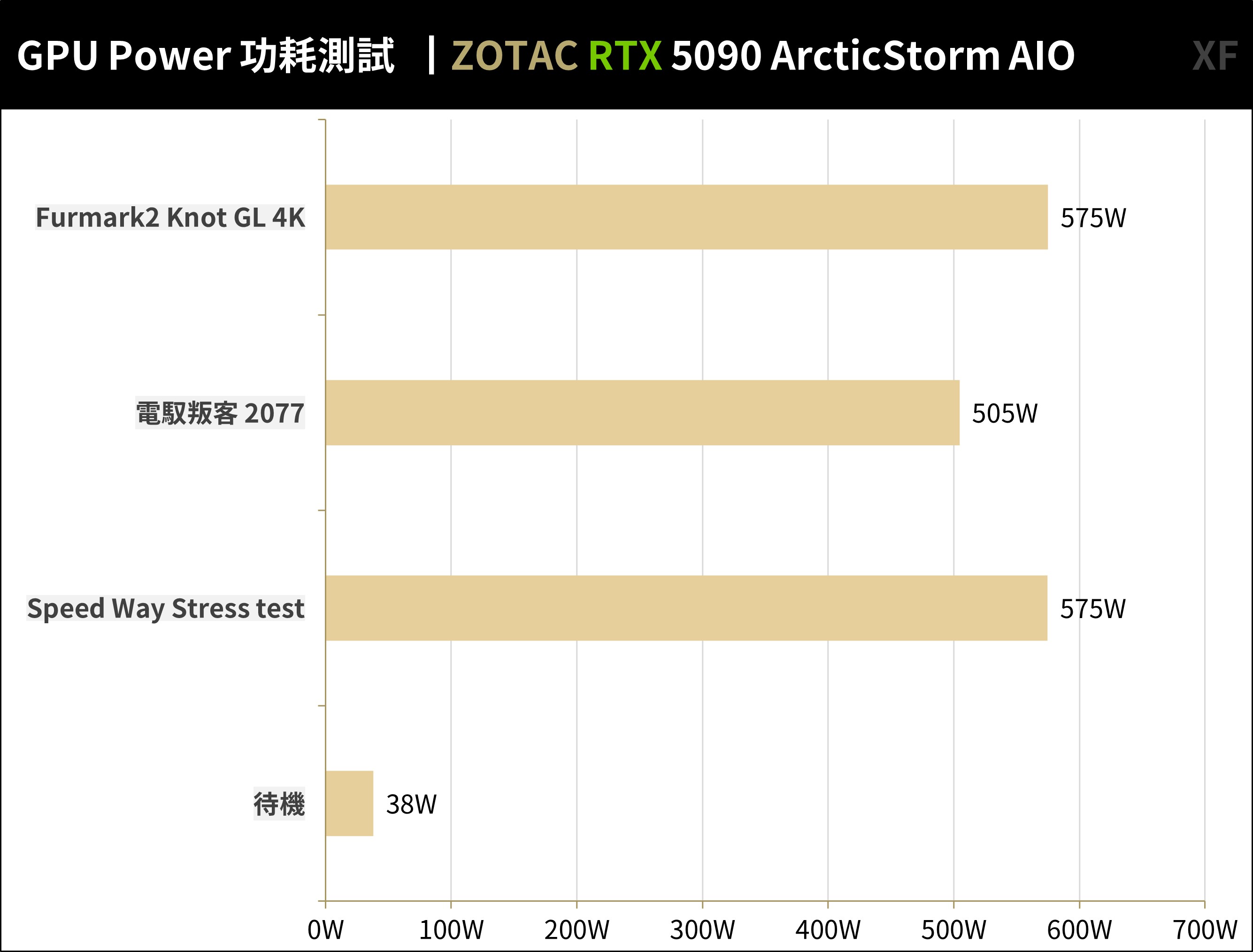 ↑ ZOTAC RTX 5090 ArcticStorm AIO 功耗測試。