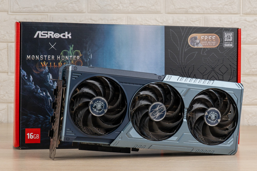 ↑ 訂製版顯卡 ASRock Radeon RX 9070 XT MONSTER HUNTER WILDS EDITION 16GB。