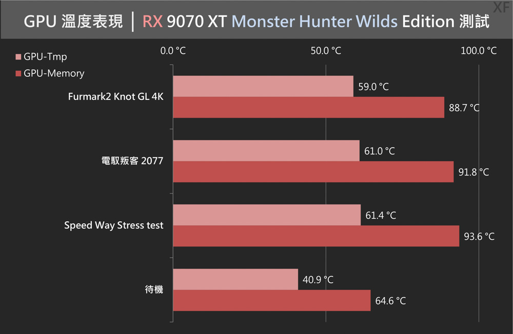Radeon RX 9070 XT MONSTER HUNTER WILDS EDITION – 功耗與溫度測量