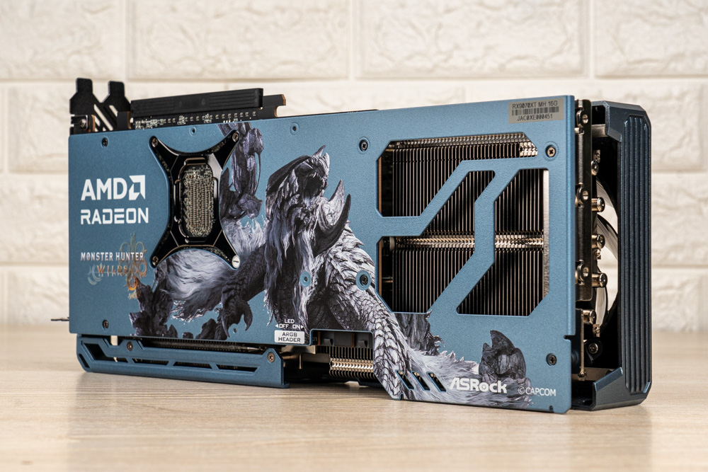華擎ASRock與 Capcom旗下大作《魔物獵人:荒野》限定聯名合作,以高階Radeon RX 9070 XT Steel Legend 為原型,推出全新 「Radeon RX 9070 XT MONSTER HUNTER WILDS EDITION 16GB」 訂製版顯卡,外觀以遊戲封面擔當的鎖刃龍為主題,具備搶眼的青銀藍配色,配有專屬銘牌與紋飾等視覺元素,搭配金屬背板上的鎖刃龍雄姿,彷彿夢回歷戰時的精采盛況。