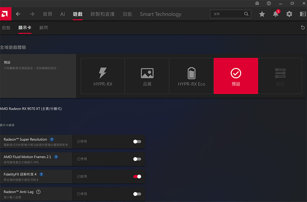 而所有測試過程,將全程使用AMD Radeon驅動軟體25.11.1版本,並且軟體內的全域遊戲體驗設定也保持為預設模式 (默認開啟 FSR4支援) 來進行測試。