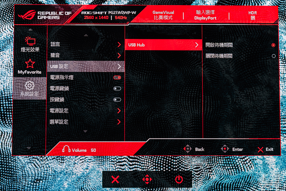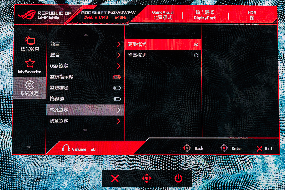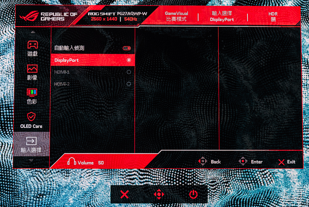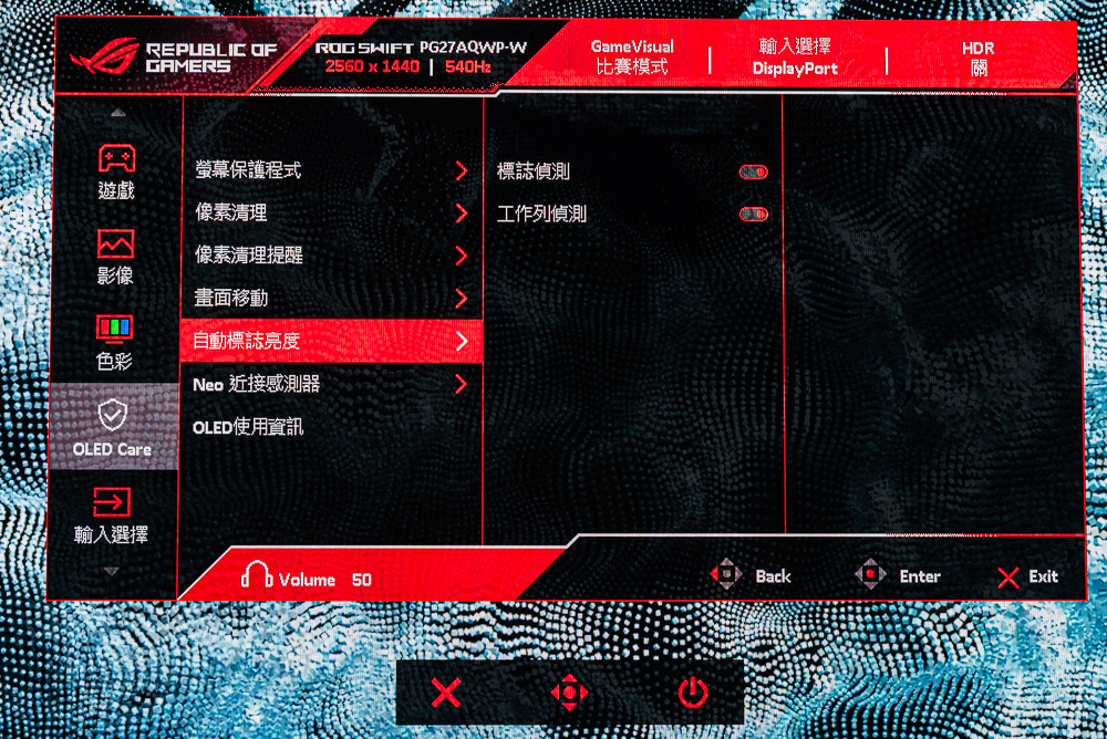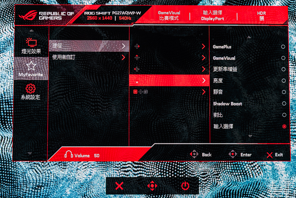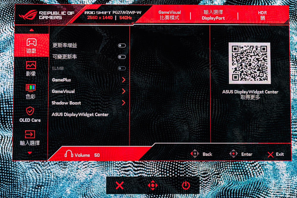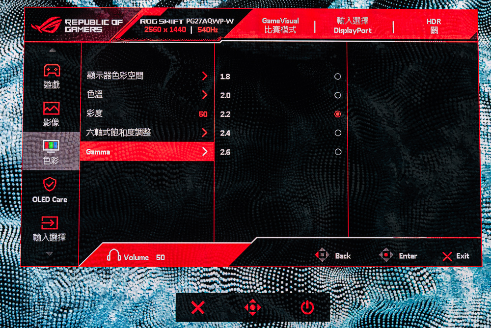 ROG Swift OLED PG27AQWP-W OSD 功能:GameVisual、均勻亮度、濾藍光、色彩、Gamma