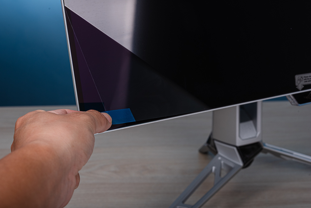 出廠時螢幕表面有著泡棉 + 保護膜,使用時需要將這層保護膜撕開。