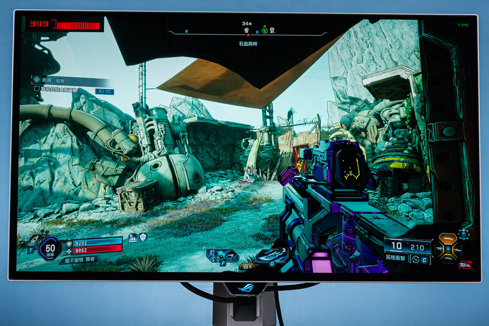 ↑ 實際開啟遊戲,左上角的螢幕更新率會隨著 FPS 變動;右上角則有 G-Sync 字樣。