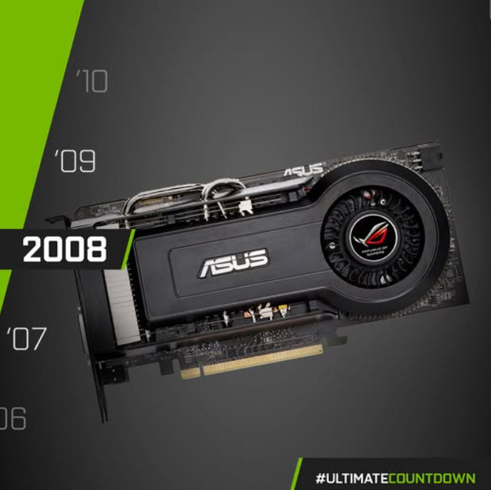 ↑ 外型敬致 2008 年推出的 ROG 首張 EN9800GT Matrix 顯示卡。