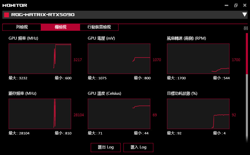 ROG Matrix Platinum GeForce RTX 5090 功耗與溫度測量