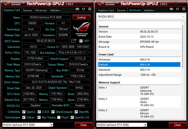 而在 NVIDIA BIOS 資訊中,顯示最高功耗設定來到 800W 的上限。