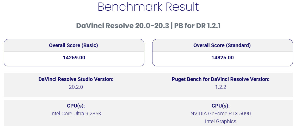 ↑ PugetBench for DaVinci Resolve。