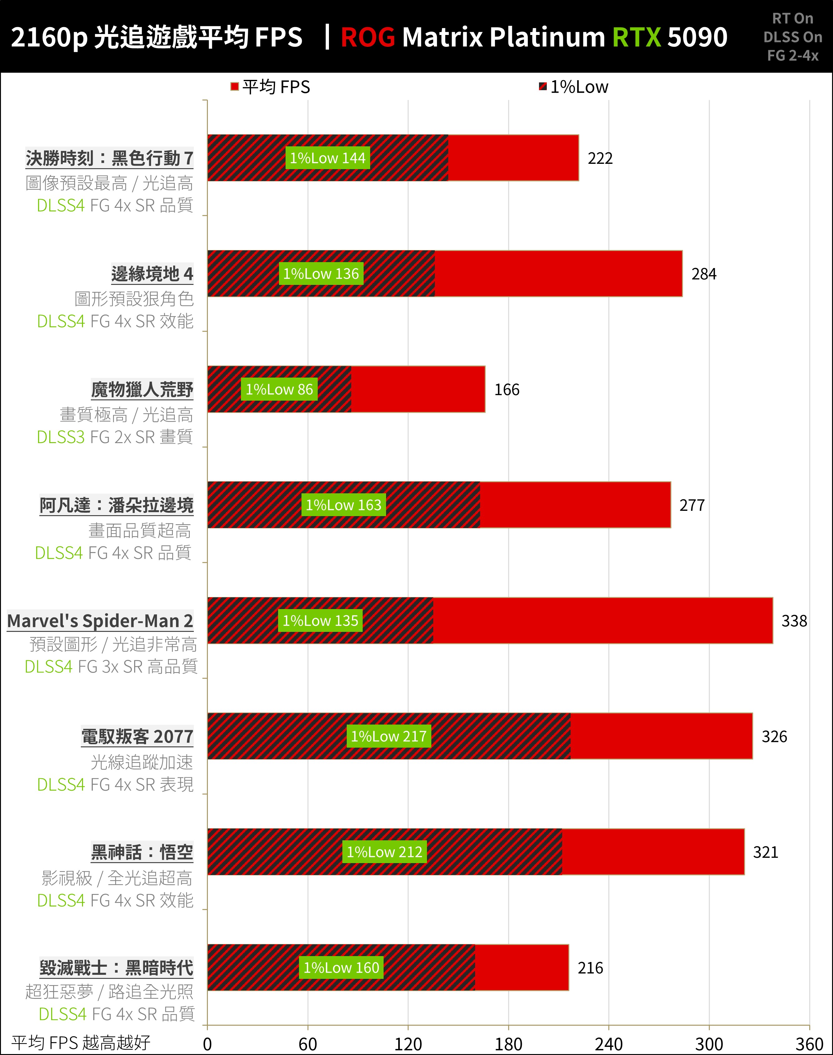 ROG Matrix Platinum GeForce RTX 5090 – 8 款光追、SR + FG 加速遊戲測試