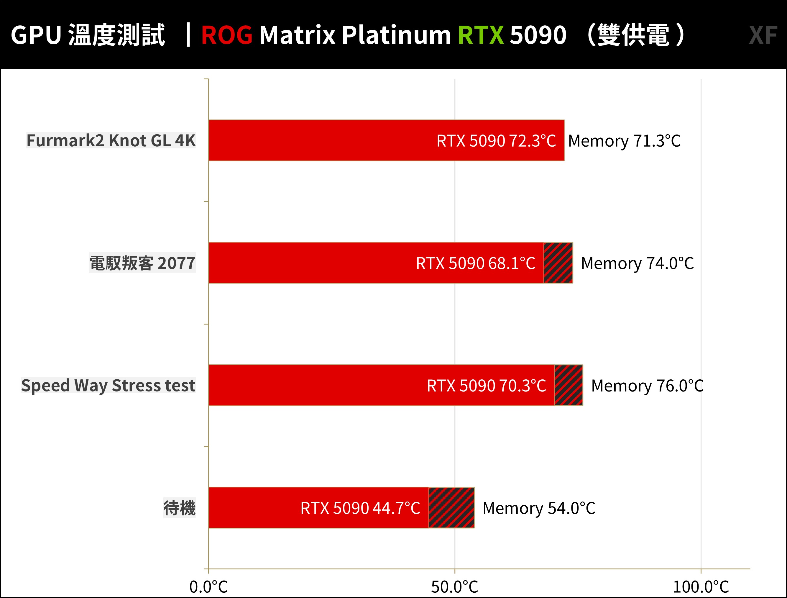 ↑ ROG Matrix Platinum RTX 5090 溫度測試。