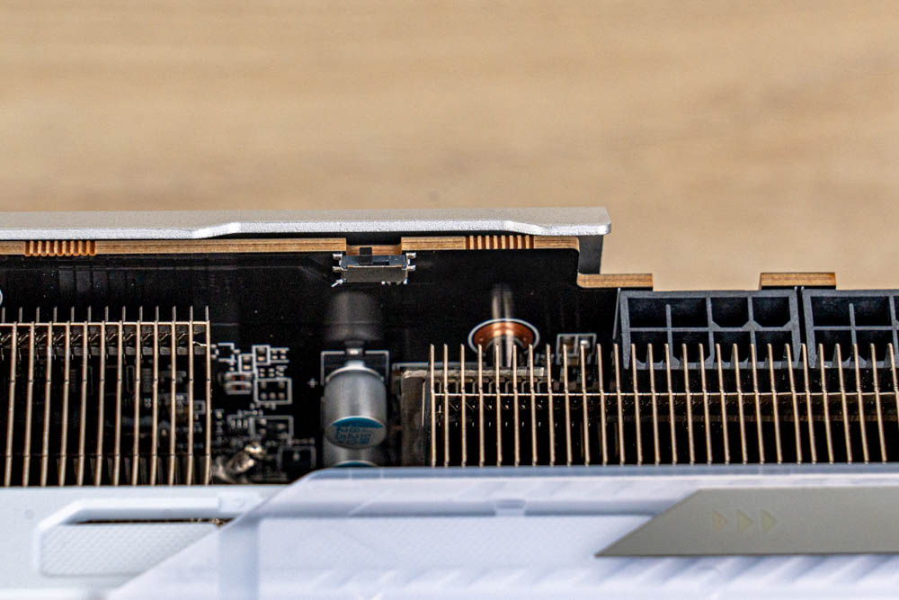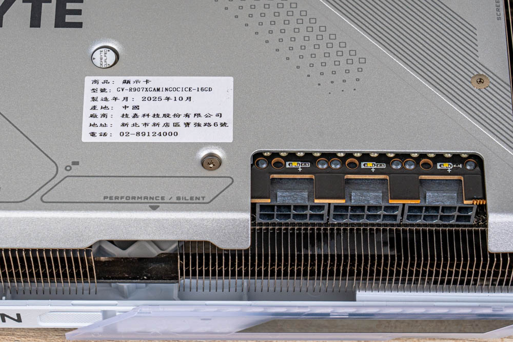 ↑ 顯卡採用 3 個 PCIe 8-Pin 供電;並設有雙 BIOS 開關,可切換 Performance / Silent 模式。