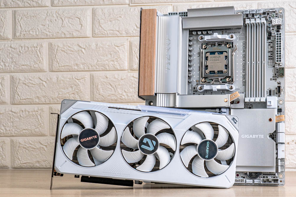 ↑ 搭配主機板GIGABYTE X870E AERO X3D WOOD、處理器 R7 9850X3D來建構測試平台。