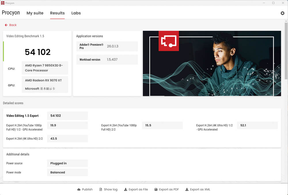 ↑ Video Editing Benchmark 1.5 for Adobe Premiere Pro 26.0.1.3。
