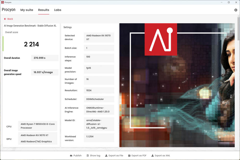 ↑ UL Procyon AI Image Generation Benchmark Stable Diffusion XL (FP16)。