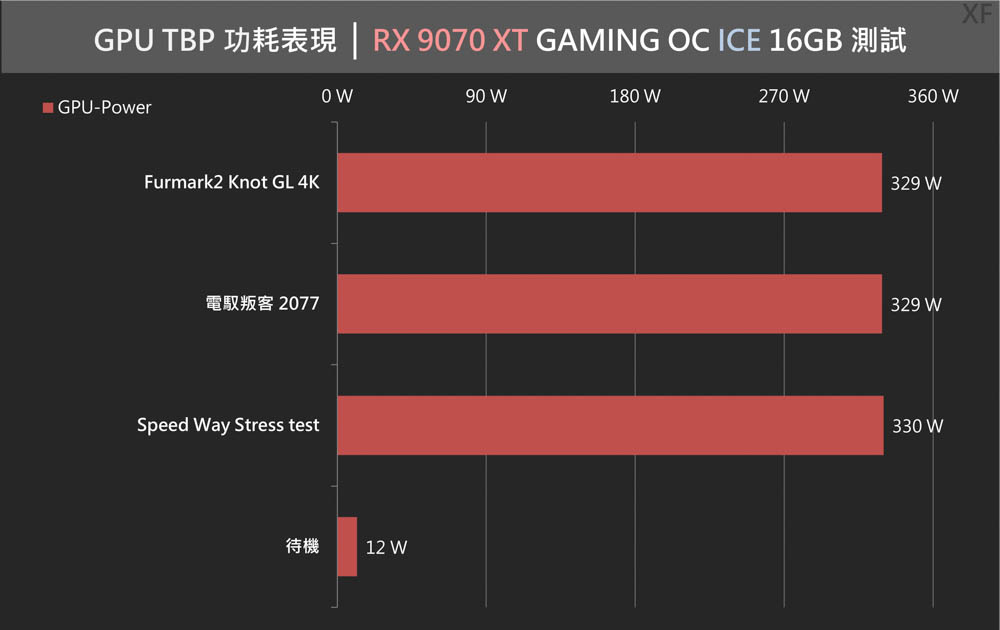 RX 9070 XT GAMING OC ICE 16GB – 功耗與溫度測量