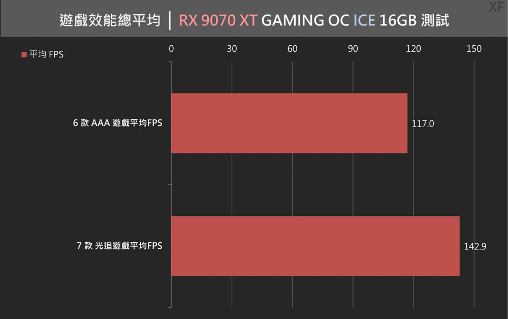 ↑ GIGABYTE RX 9070 XT GAMING OC ICE 16GB 遊戲測試總平均。