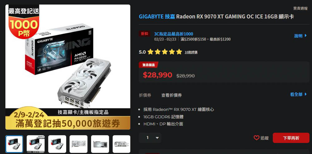 目前RX 9070 XT GAMING OC ICE 16GB官方售價為2,8990元,該價位對比 RTX 5070 TI,除了價格相對優勢外,有著滿足 4K 60FPS 次世代遊戲的流暢效能,並且僅需原版黑色款式多 1 仟元預算,即可升級為多層次耐看的雪白機甲。