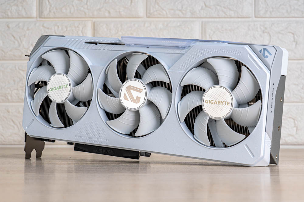 而外觀方面,才是 ICE款式的特色亮點,有著以白、銀、灰等分色設計,打造出多層次的雪白機甲,以及專屬塗裝的白銀金屬磨砂背板,搭配高反射鏡面的燙銀 GIGABYTE 可動滑蓋,能與 RGB 炫彩燈效來互動調整,並作為視覺點綴,讓顯卡整體層次豐富,耐看不搶眼。