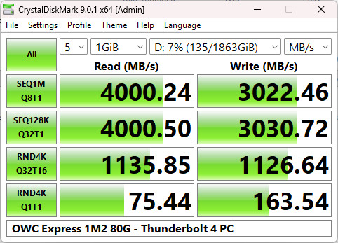 OWC Express 1M2 80G 效能測試 / Thunderbolt 4 PC