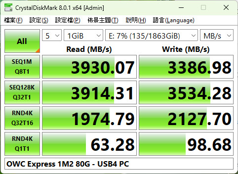 OWC Express 1M2 80G 效能測試 / USB4 PC