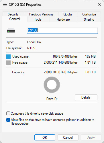 ↑ CRAS C910G 2TB 格式化後可用容量 1.81TB。