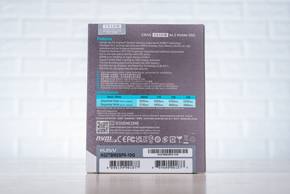 ↑ KLEVV CRAS C910G M.2 SSD 外包裝。