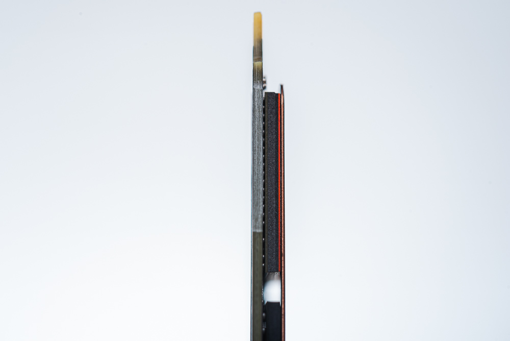 近距離側面拍攝,可以發現到 SSD 正面的散熱片,非常輕薄是由石墨烯與銅箔複合材料組成,能更有效的傳遞 SSD 的廢熱強化整體溫度壓制能力。而這薄型化的設計,也讓 CRAS C910G 在各種平台安裝擴充時,不需擔心加裝散熱片的 SSD 導致空間干涉等各種組裝問題。
