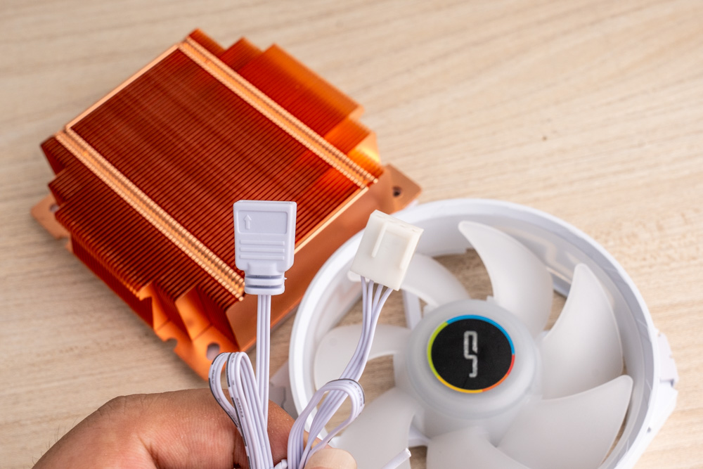 風扇拆卸,採用對邊扣接的快拆設計,在散熱器與風扇兩側邊設有對應卡扣,使其相互扣接,讓玩家簡易的拆卸安裝,方便日後清潔維護;而風扇供電接頭,則提供 4pin PWM、3pin ARGB來進行連接。