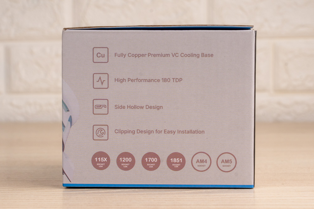 C5 Cu 針對散熱底座設計,採用大面積的 VC 均熱板銅底,可直觸 CPU 表面,帶來更均勻的熱量分布,並且全身以Cu銅材製造,設有 61 片下吹式鰭片數,強化解熱能力高達 180 W,搭配 3200RPM 高轉速ARGB風扇,更進一步提升散熱性能,兼具絢彩ARGB的視覺燈效。
