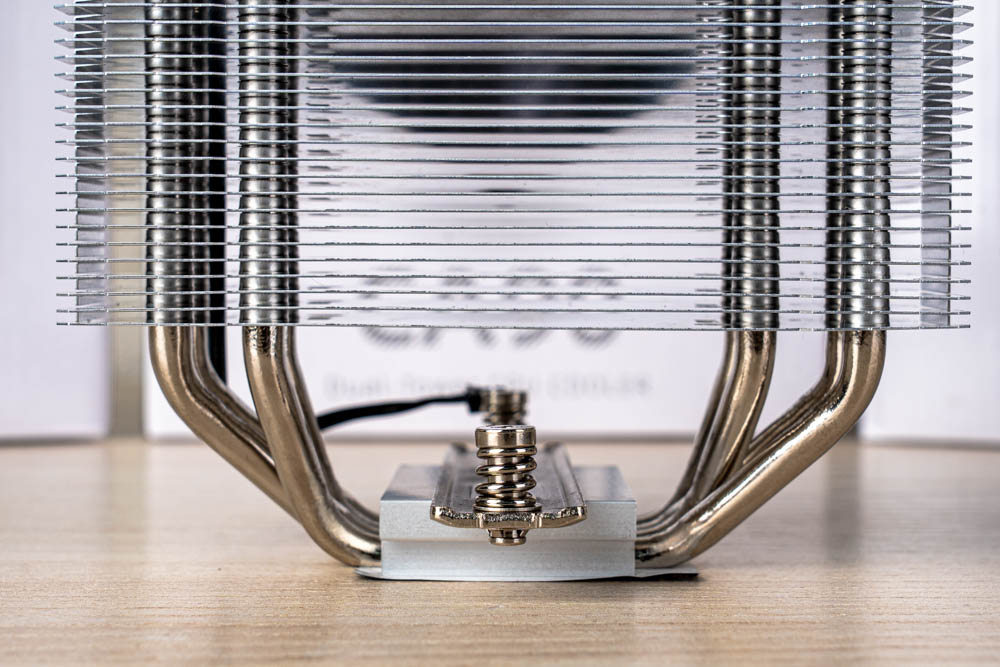 散熱底座,也維持同樣基調,CA40 單獨採用熱管直觸設計,以切削工法將熱導管與散熱底座相互嵌合,形成底座的接觸面,再連同熱導管一併打磨平整,減少直觸CPU頂蓋時的中間介質,帶來實惠與優化兼具熱傳導效率;並且底座熱管直觸,還特別將左右外側熱管隔開,以確保導熱面積最大化;此外,CA40 配有著相異方向的貫穿式扣具。