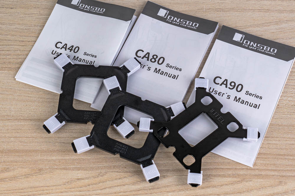 其中CA40 / CA80 / CA90三款散熱器,在扣具零件的螺絲套筒上,基本可相互共用;而 Intel 安裝背板的外觀材質,CA90 特別採用黑化金屬材質,呼應配色主題。