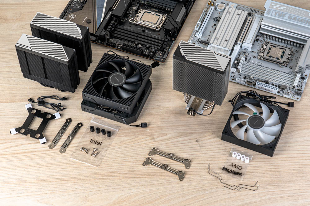 並且安裝體驗上,符合本家經典的簡易實用設計,針對各平台腳位的安裝扣具,皆設有AMD、INTEL的文字夾鏈袋提示,可免細看說明書,仔細核對詳查,省去繁瑣的確認過程;並且CA系列散熱器,已預裝風扇與連接線,因此安裝時僅需組裝扣具支架於主機板上,搭配塔體自帶的貫穿式扣具,可達到上手即裝即拆,便利體驗;此外,還隨附一支可使用多次的 TG-7 散熱膏,方便後續維護。