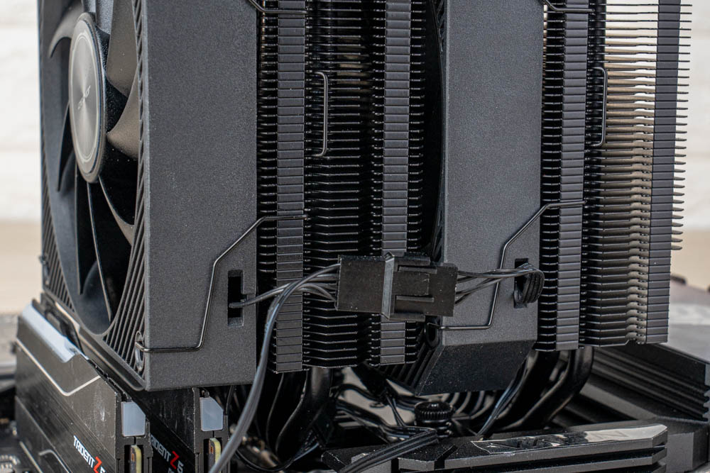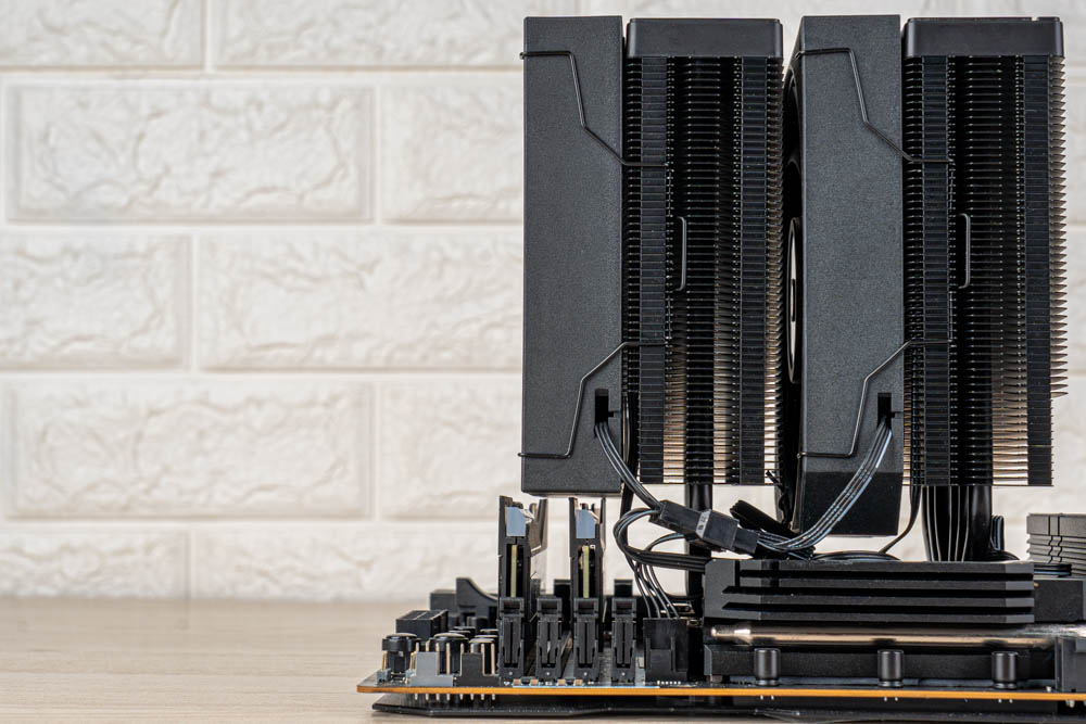 而塔散左右側面,可見CA 系列在風扇固定上,採用卡扣支架,搭配塔體外側的卡扣溝槽,可快速調整風扇;並預先串好所有連接線材,留有基本供電 PWM 4-Pin / ARGB 3-Pin 接頭,方便玩家直觀安裝,省去繁瑣的塔散組裝過程。
