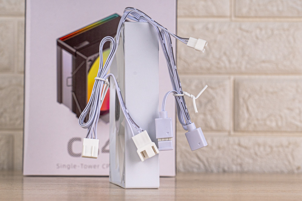 ↑ 風扇供電,分有連接主機板的 PWM 4-Pin、ARGB 3-Pin,與連接頂蓋ARGB 3-Pin小接頭。
