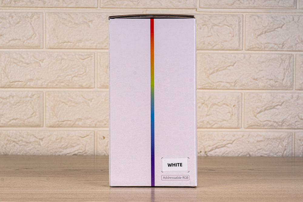 ↑ 左側有著 ARGB 彩虹線條裝飾,並標有配色款式;筆者為 White 白色款。