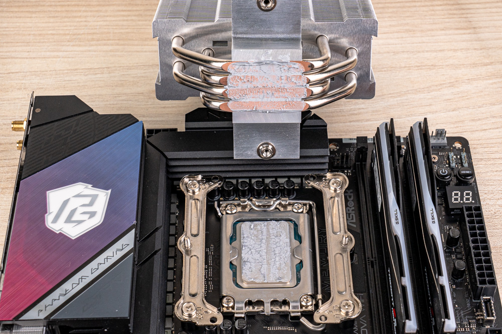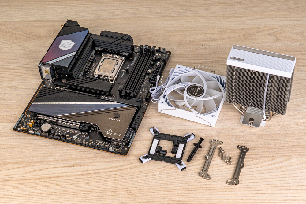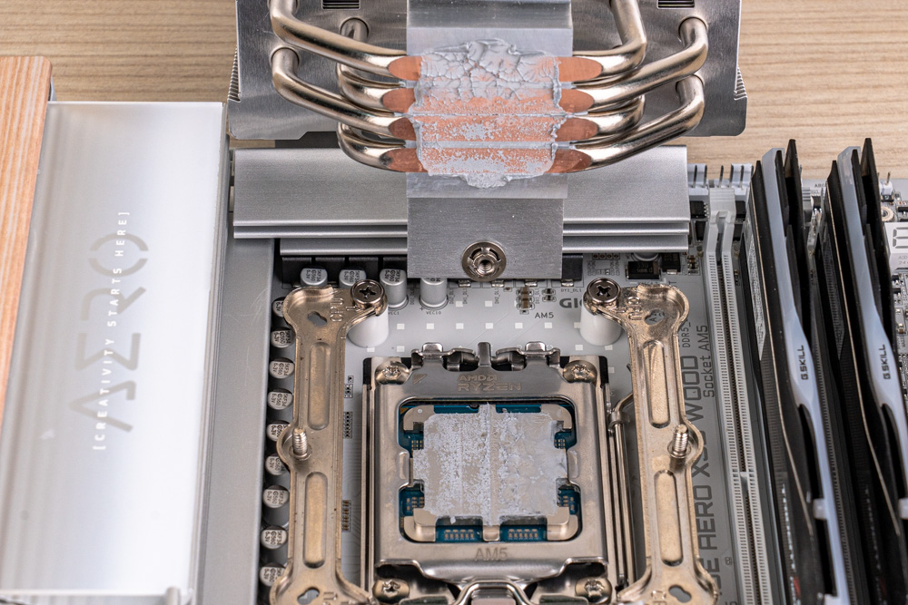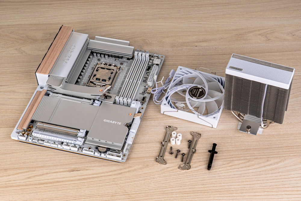 散熱測試,使用兩大主流級別的處理器,分別為 Intel Ultra 7 265K、搭配主機板 ASRock Z890 NOVA WIFI,以及AMD Ryzen 7 9850X3D、搭 GIGABYTE X870E AERO X3D WOOD,作為測試平台;而 BIOS 設定,僅開啟風扇全速、EXPO / XMP 記憶體設定檔、Intel 溫度牆 115 °C,其餘則皆保持主板預設的 Auto 設定。
