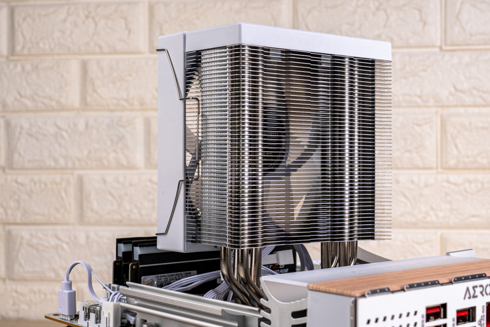 ↑ 安裝風扇後,可見會與扣具產生干涉;因此須待至塔體安裝完,再進行風扇安裝。