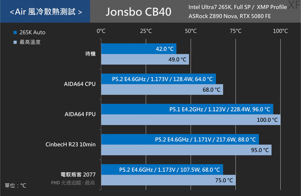 ↑ Intel 平台 Core Ultra 7 265K,Jonsbo CB40 風冷散熱測試。