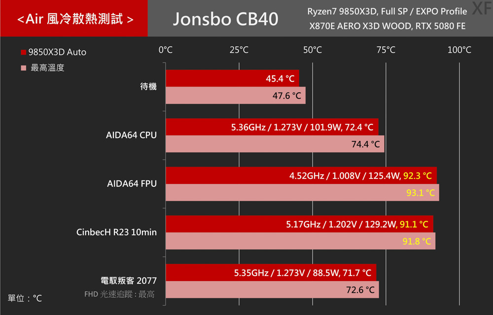 ↑ AMD 平台 Ryzen7 9850X3D,Jonsbo CB40 風冷散熱測試。
