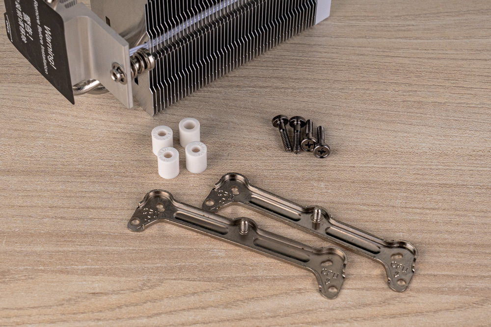 其中C40 塔散的腳位扣具,有著簡易友善的配件設計,方便玩家區分各平台的 CPU腳位;亦如AMD 平台的 AM4 / AM5,採用槍鐵色螺絲,搭配白色套筒,來安裝扣具支架;而 Intel 平台,則共用亮銀色螺絲,並以黑色、灰色套筒,作為 LGA 1851 / 1700 與 115X / 1200 腳位區分。