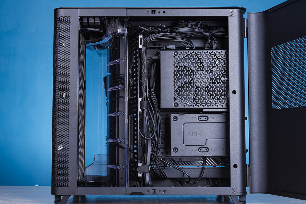 如此一來,在整理電供模組線時相對容易,且電供上方還有不少空間可以輕鬆整理電源線。實際裝裝理線時,將 2 條 CPU 電源線整理在電供上方,而 MB 24 Pin 與 PCIe 12V-2×6 的連接線,則順勢整理在電供前方。