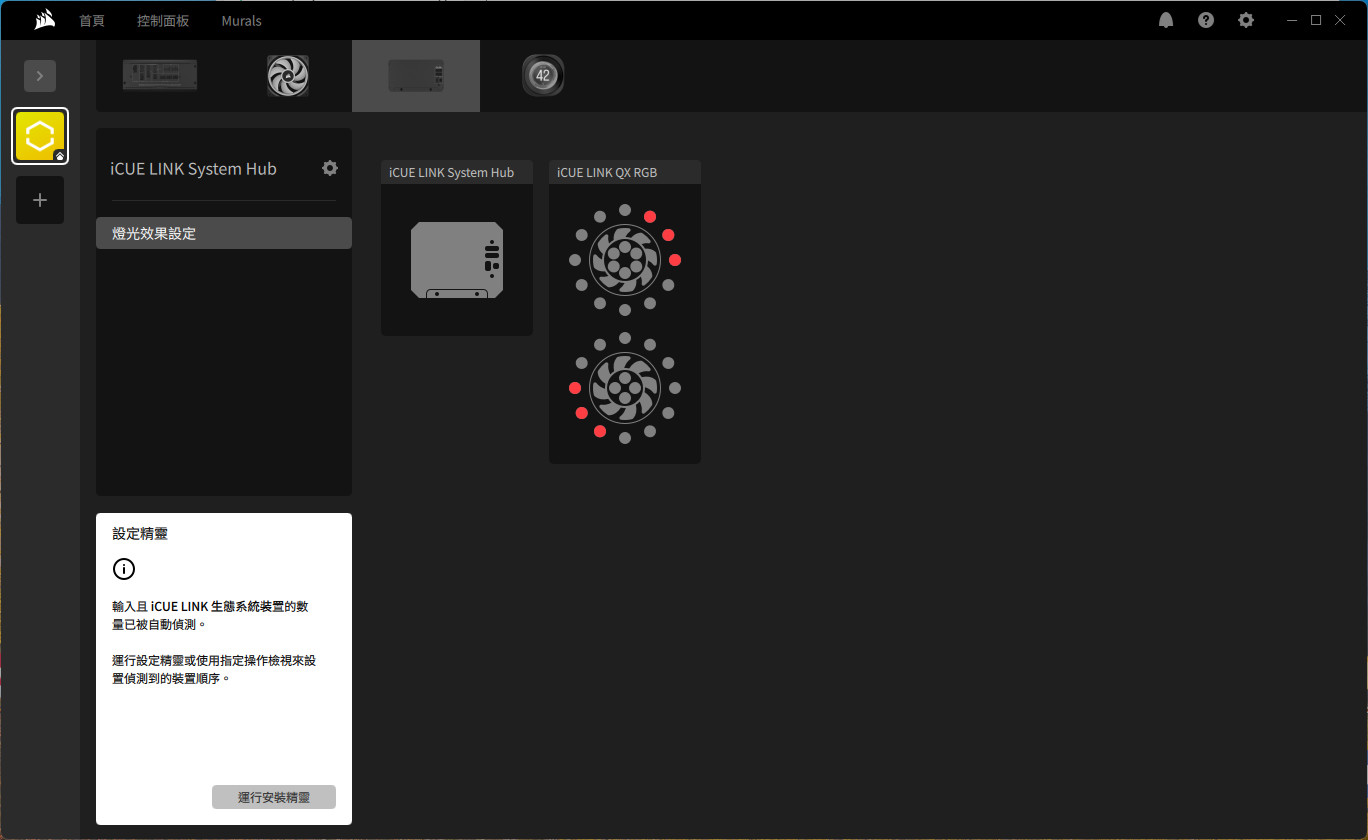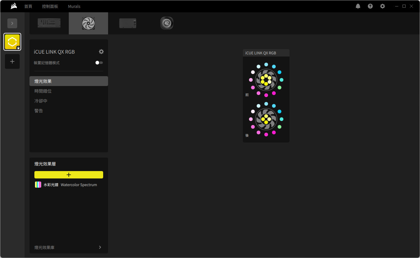 點選電供的 ICUE LINK HUB 即可檢視目前連接的 ICUE LIN QX RGB 風扇設備,而且風扇也有完整的控制與燈效調整的功能。