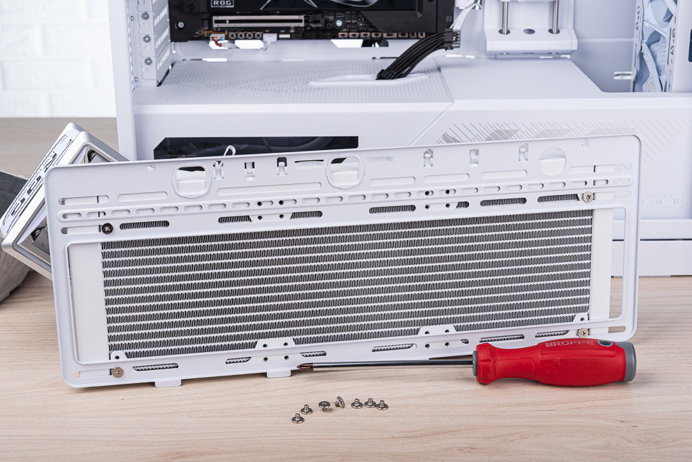 機殼前門有著同樣開孔的防塵濾網,專門為前門防塵所打造的立體防塵濾網,從機殼上方直接放入機殼當中。