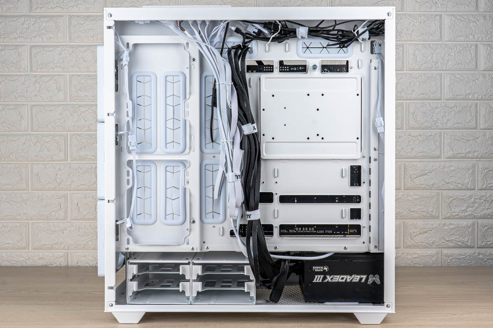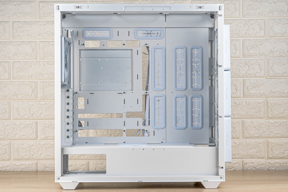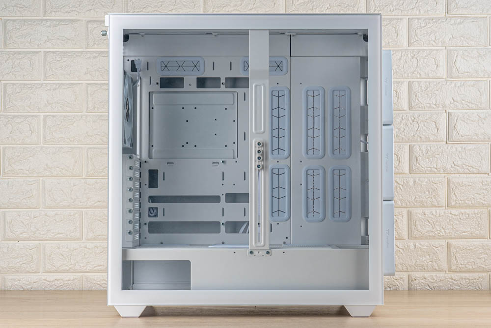 ↑ 正面有著寬敞的安裝空間,可流暢進行主板接線與零組件安裝。