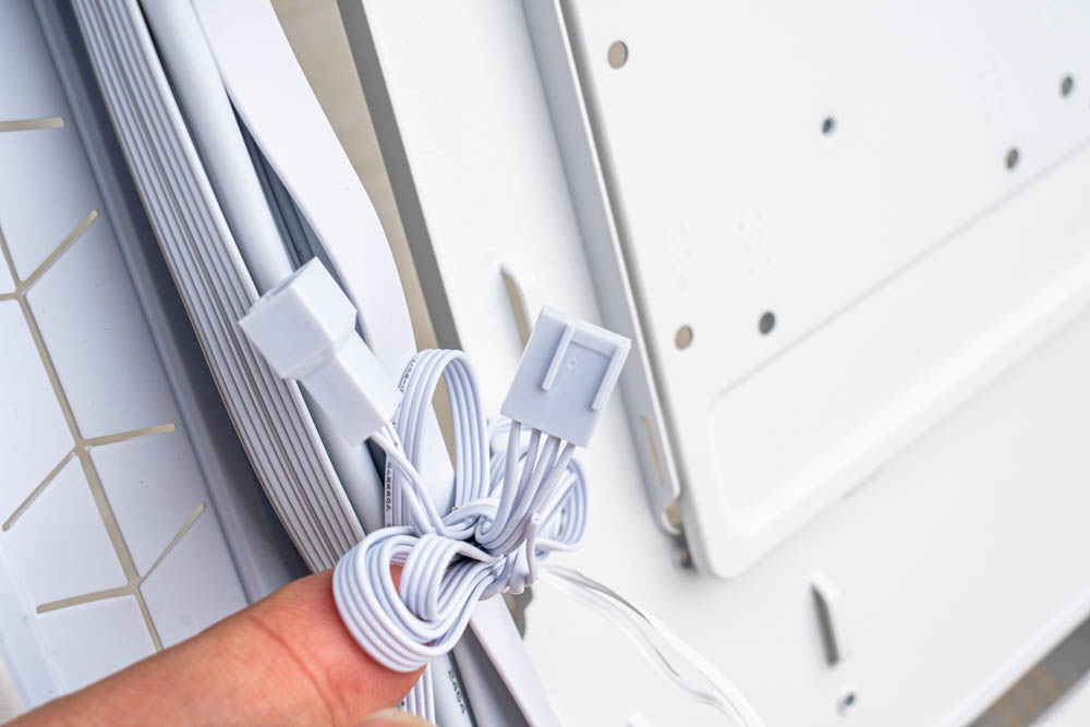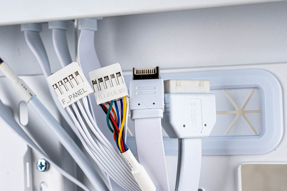前門I/O線材,採用一體式的扁平線材設計,方便玩家安裝與後續理線;並且前門3顆 CT140 風扇,也預先幫玩家串接為PWM 4-Pin的單一接頭,僅需連接於主板風扇插座。