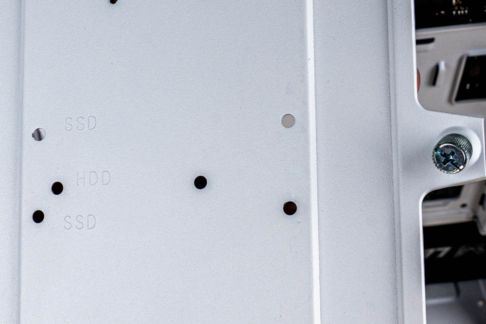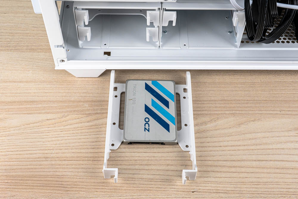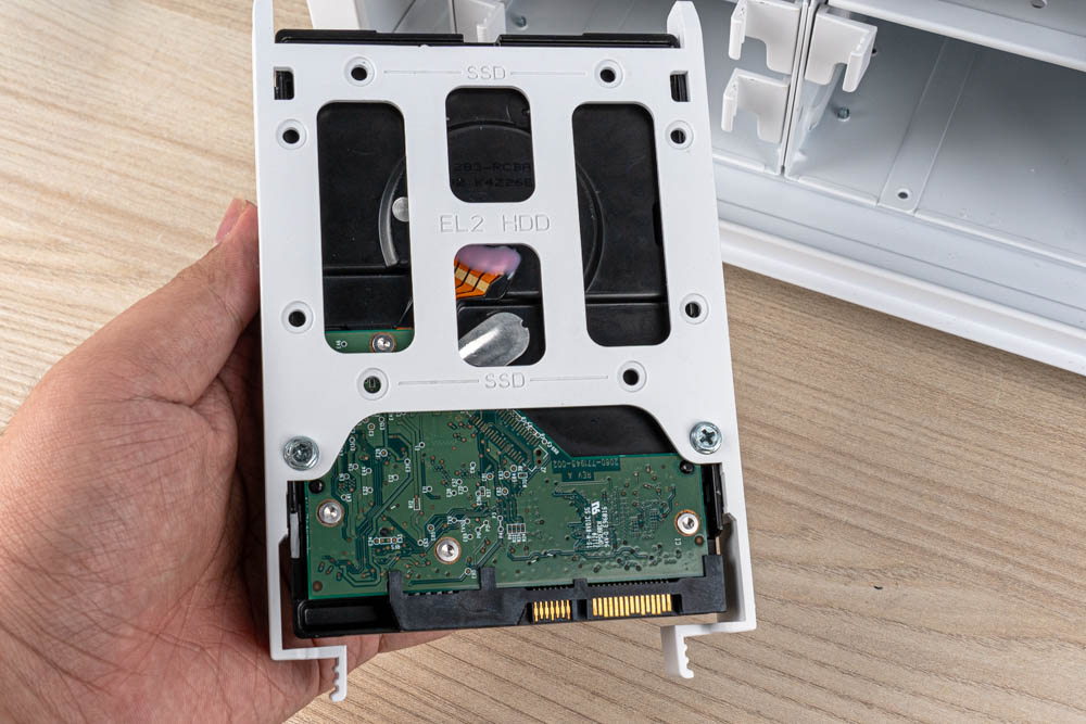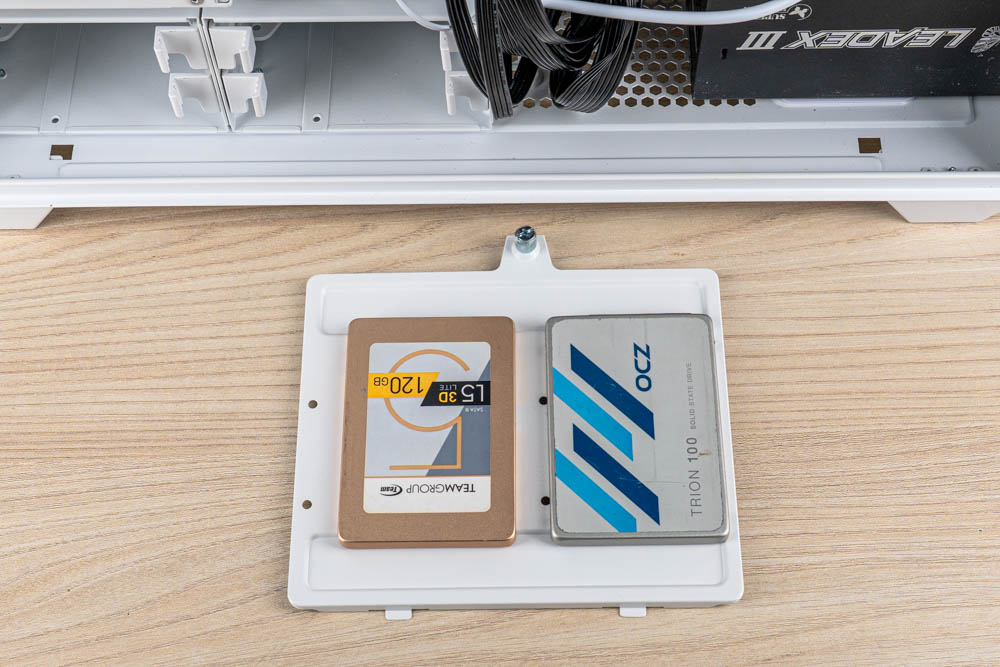先前提及的硬碟板與支架,皆支援 2.5 / 3.5 吋硬碟安裝;其中「硬碟板」,提供兩種擴充方案,可支援 2 顆 2.5 吋,或 1 顆 3.5 吋硬碟擴充;而分艙下方的「硬碟支架」,則可支援 4 顆 2.5 / 3.5 吋的硬碟擴充。