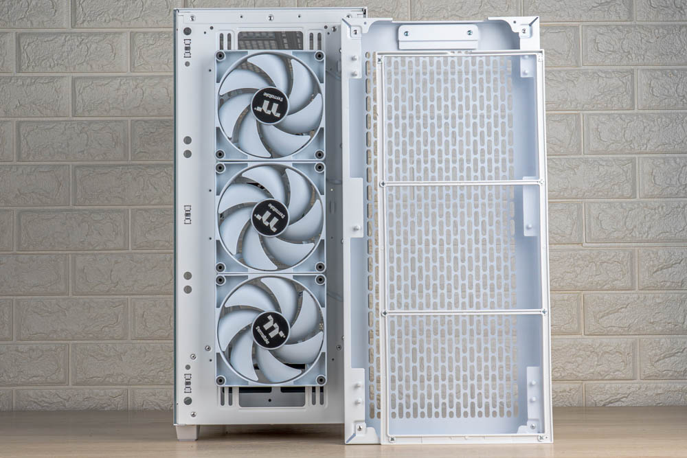 ↑ 前門外觀以大面積的長條狀散熱網孔,搭配本家 TT 字樣作視覺點綴。