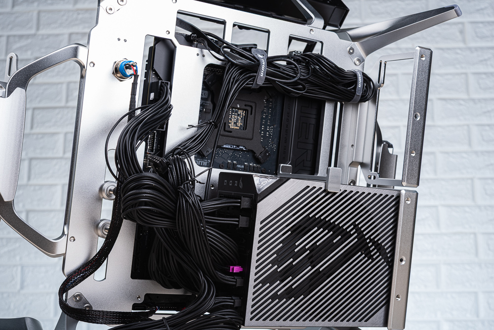 背面電供安裝 ROG THOR III 1000W 大電源,加上魔鬼氈理線固定,即可輕鬆整理線材。